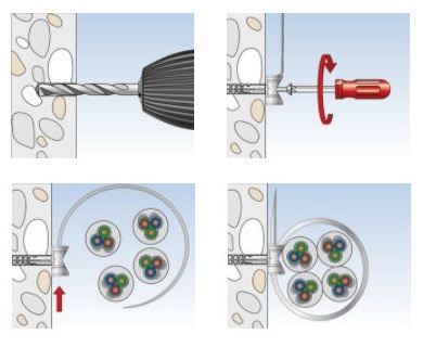 - La pressione delle linguette permette il posizionamento di cavi di diametro diverso nello stesso fissatubi.