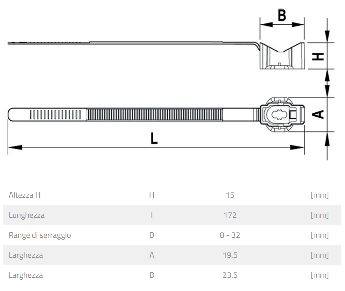 - Collarino in nylon che permette il fissaggio di cavi e tubi di diverso diametro.